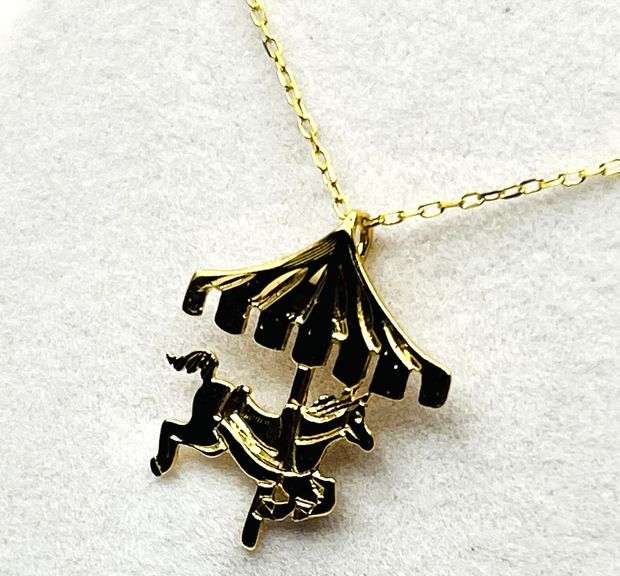 Gold Plated Sterling Silver Merry Go Round Carousel Horse Pendant with Gold Plated Sterling Silver Chain, Retail $300.00.