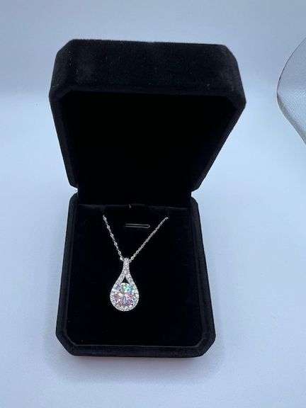 Sterling Silver Simulated Diamond Teardrop Necklace 4.0ct, adjustable chain 16" to 18", mounted in925 sterling silver with white gold overlay.